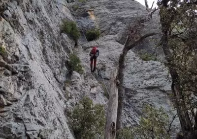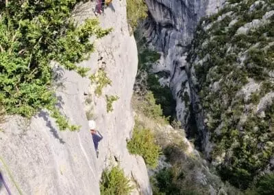 Une des particularités du Verdon est que la majorité des voies sont accessibles par le haut, ce qui est relativement rare dans le monde de l’escalade. Les grimpeurs commencent généralement par une descente en rappel dans le vide, avant de débuter leur ascension. Cette approche, qui ajoute une dimension vertigineuse dès le départ, nécessite une bonne maîtrise des techniques de rappel. Les rappels dans le Verdon peuvent être impressionnants, avec des descentes de plus de 100 mètres en plein vide, notamment sur des parois telles que celles de L’Escalès.