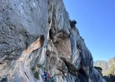 Les prises variées du Verdon exigent souvent une escalade technique, où les grimpeurs doivent constamment ajuster leurs positions et leurs mouvements pour progresser. Les passages peuvent alterner entre escalade en dalle, demandant finesse et précision, et sections plus athlétiques dans des surplombs ou des dévers où la force est primordiale